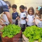 As turmas do Infantil 3 trabalharam o conteúdo de Germinação e com muito carinho prepararam uma horta. As crianças plantaram alface, salsinha, rabanete, almeirão e rúcula, regaram, acompanharam o crescimento, fizeram a colheita e levaram para casa. Que deliciosa salada!